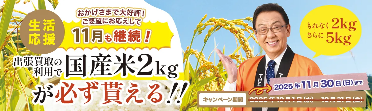 11月限定 現金5万円 出張買取でお米2kg プレゼント中!※1 公式サイト▶ |