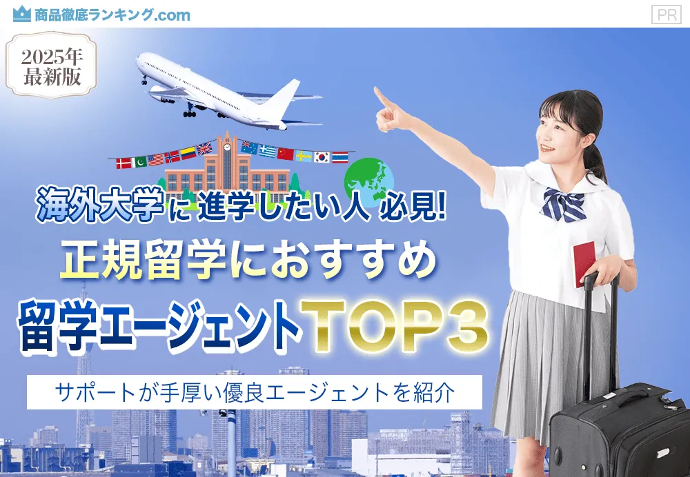正規留学をする際におすすめな留学エージェントTOP3をランキングにしました。
