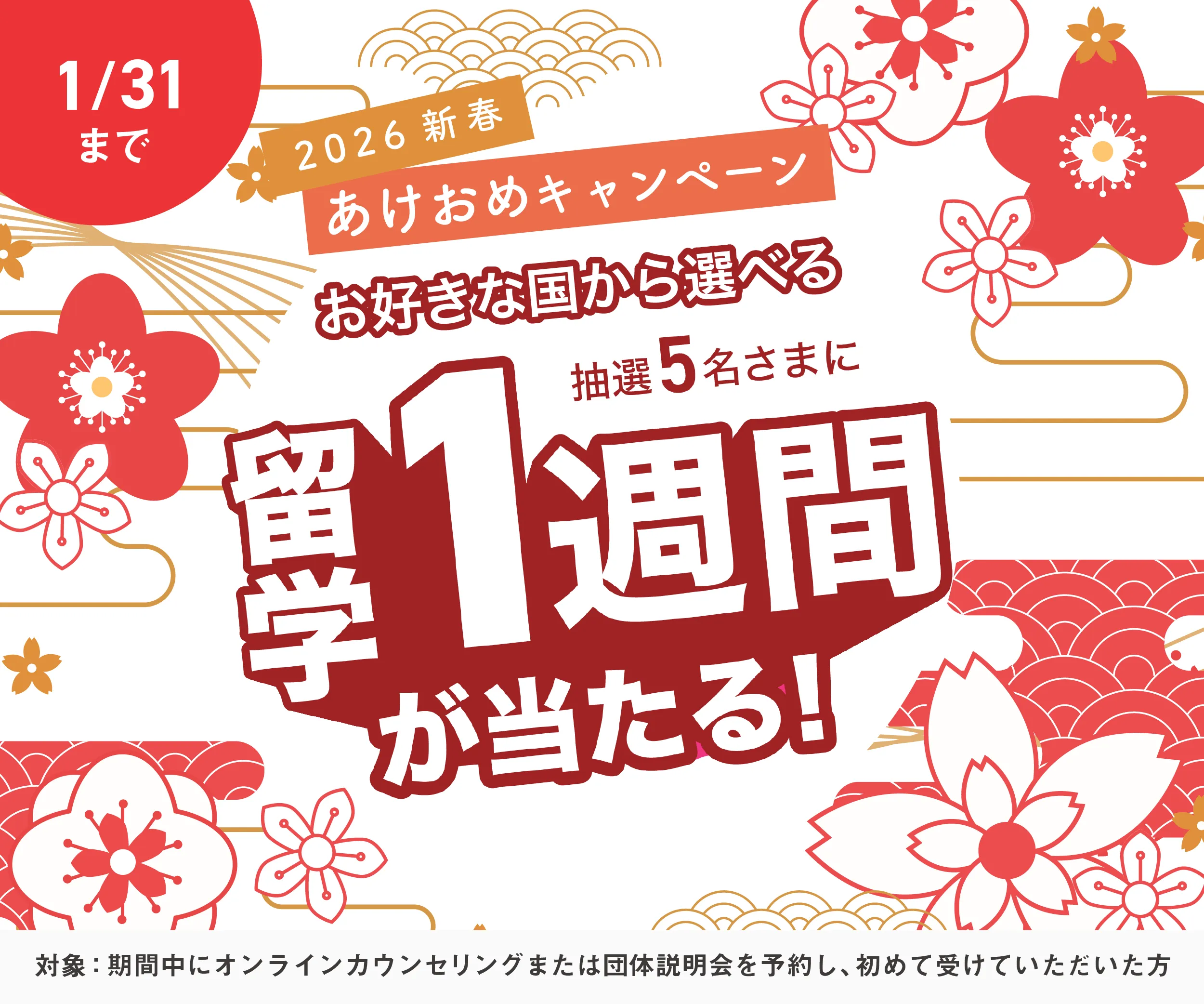 留学1週間プレゼント(最大145,000円相当)を抽選で5名様にプレゼント!